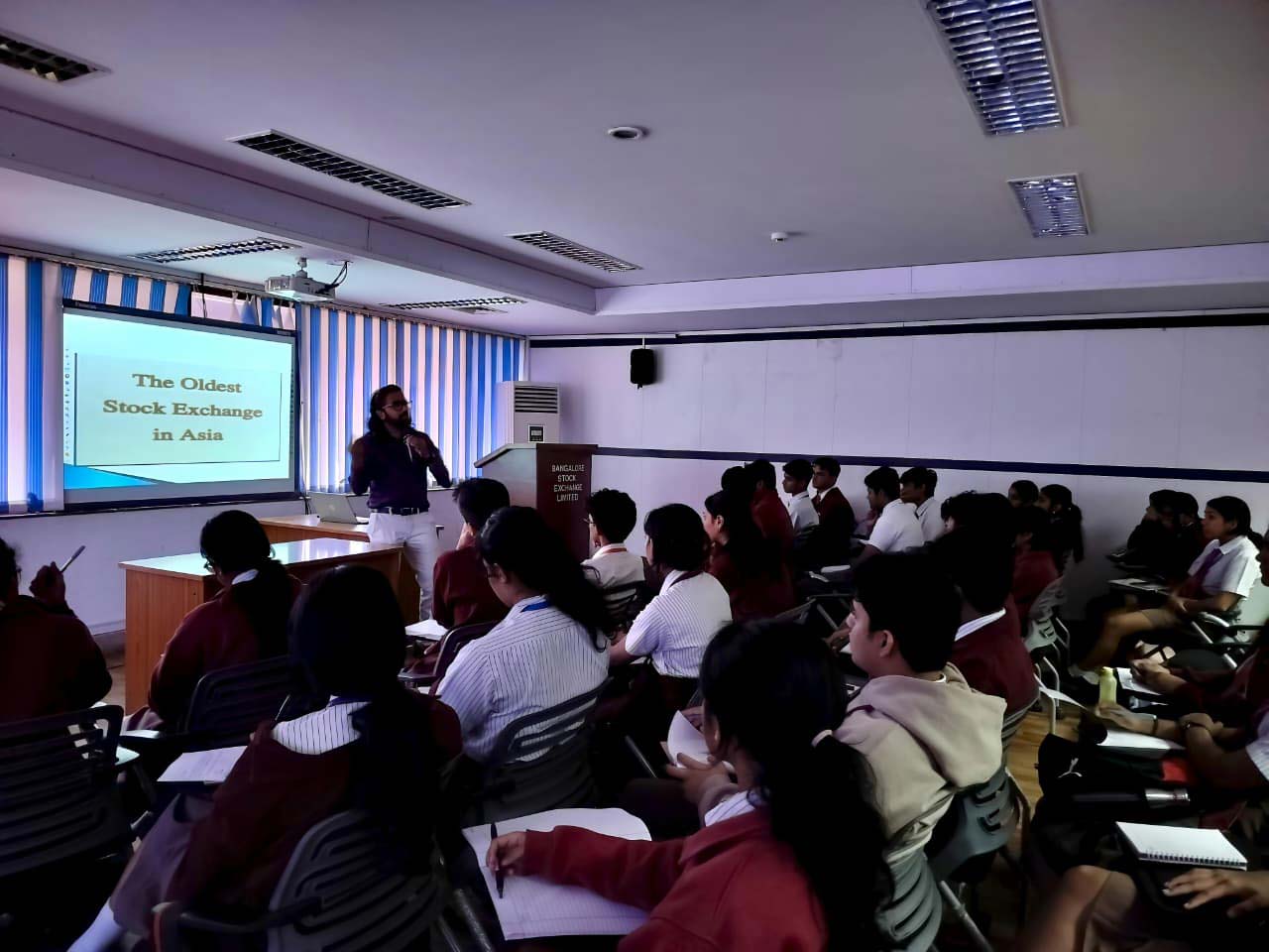 On 15 December 2025, the grade 11 students participated in an engaging three-hour session on “Introduction to Stock Exchange and Fundamentals of Trading”. Jointly conducted by Stock Market Institute and Stockbyte at the Bangalore Stock Exchange, the session offered students a comprehensive understanding of how stock markets function, covering essential concepts such as trading mechanisms, market participants, and the dynamics of price movements.