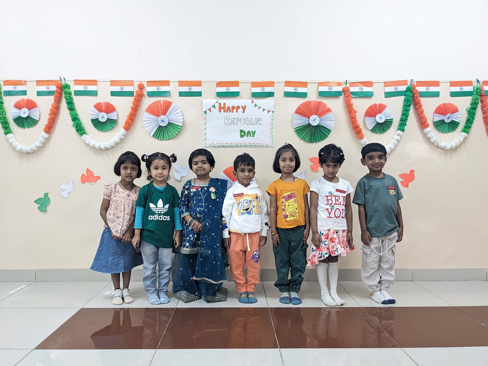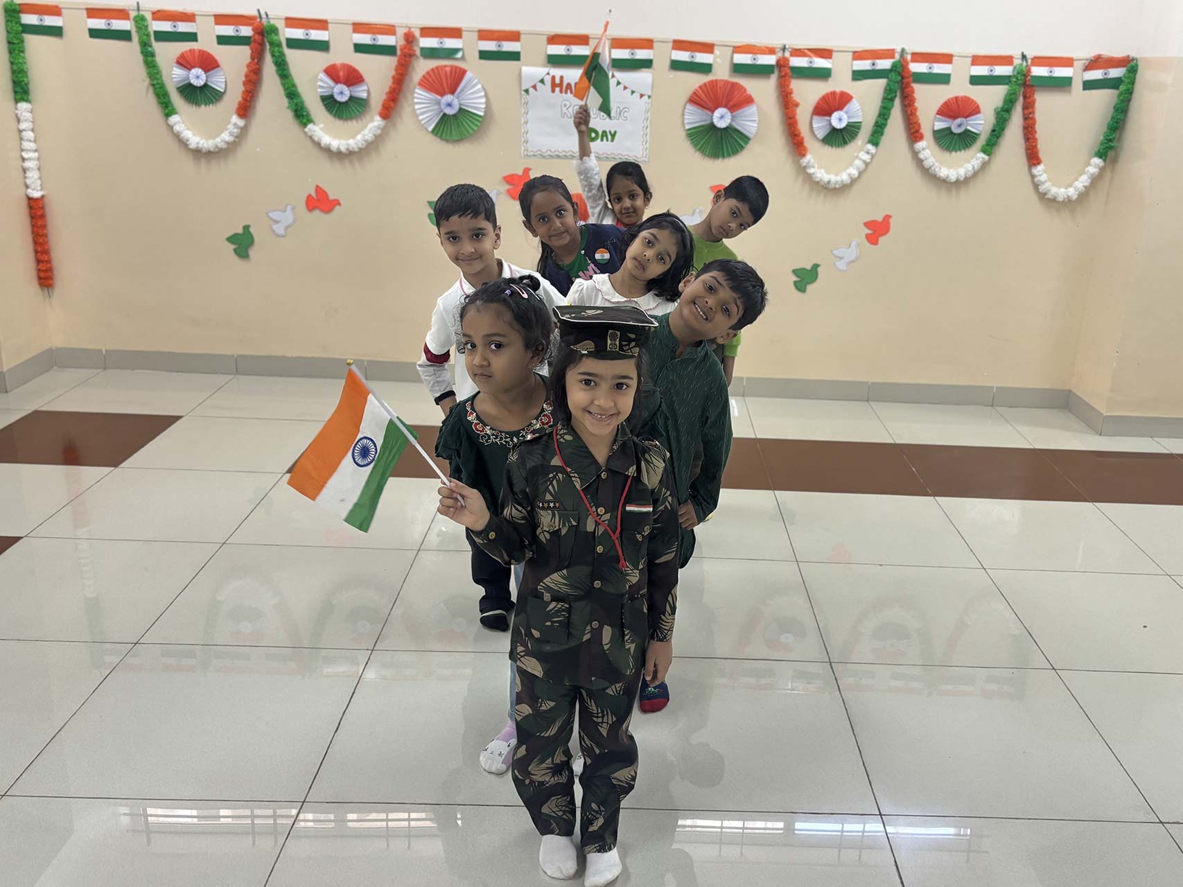 Republic Day was celebrated with great joy and pride in our Montessori school on 23rd January. Our little ones arrived dressed in the vibrant colours of saffron, white, and green, turning the campus into a beautiful sea of the tricolour.
