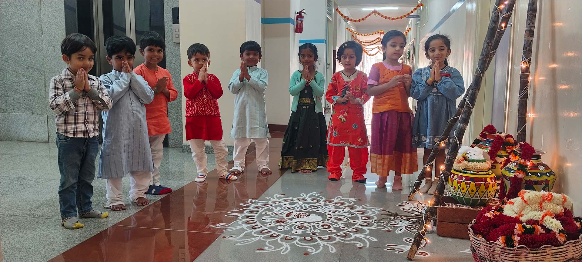 Makara Sankranthi was celebrated with great joy in our Montessori on 13th January. The campus came alive with colour as the children arrived dressed in bright, traditional attire, adding cheer and charm to the day. Through simple and engaging activities, the children learned about the significance and traditions of this harvest festival in a way that was meaningful and age-appropriate.