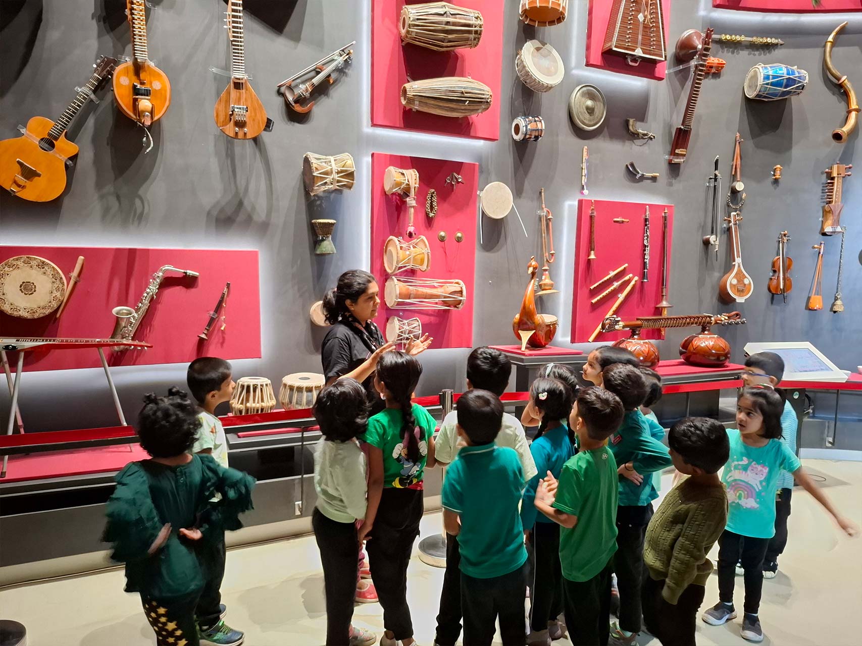 The children were absolutely charmed by the vintage radios and televisions, giggling as they compared “olden-days music time” with the gadgets they know today. Their wonder grew as they admired the amazing collection of musical instruments — from our very own tabla, sitar, and veena to shiny keyboards and string instruments that looked ready to burst into song.