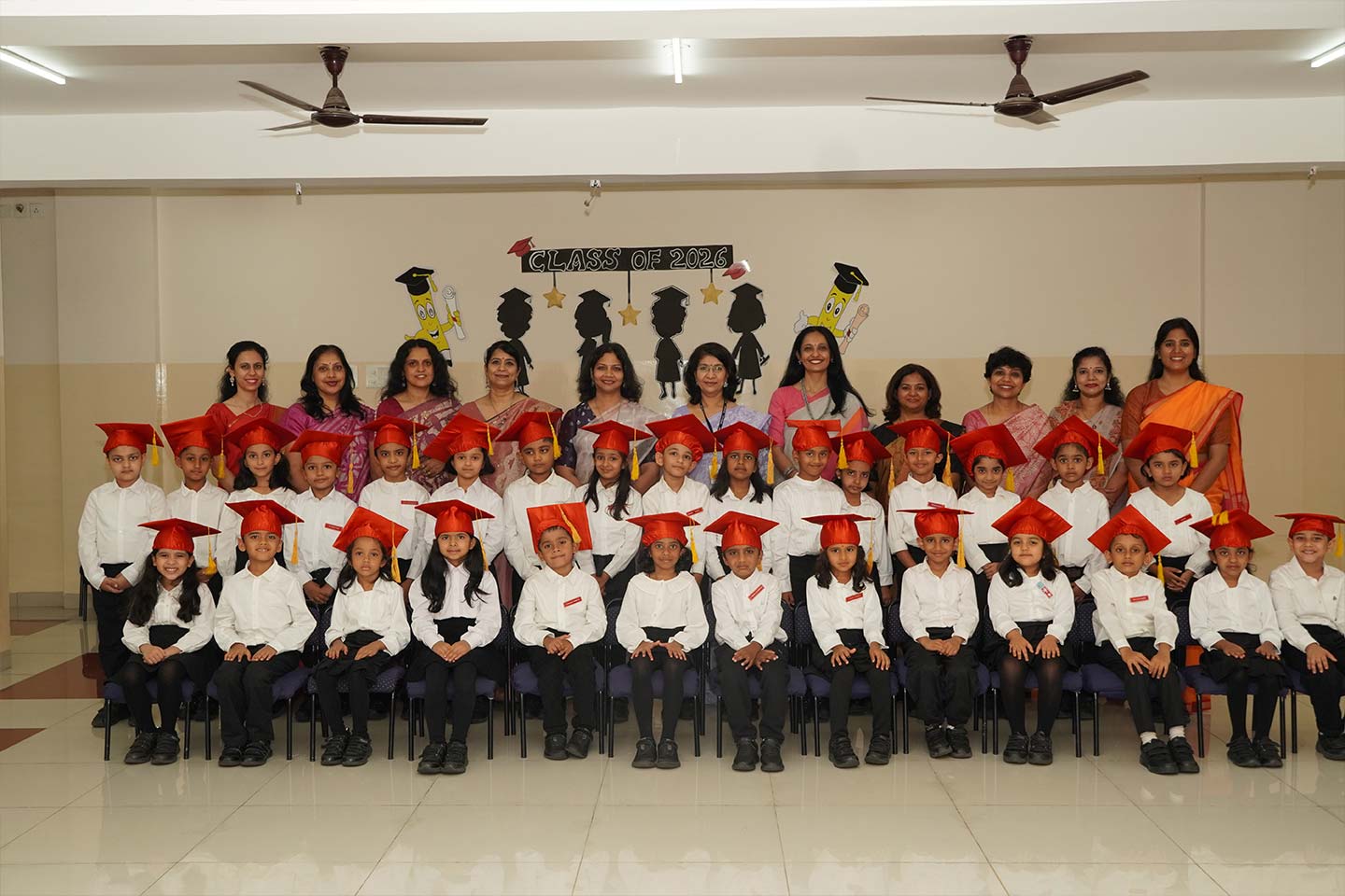 The event began with the KG 2 students walking gracefully down the aisle, holding lamps that symbolised hope, knowledge, and the bright future ahead. They were accompanied by their KG 1 and KG 2 class teachers, whose care and guidance have supported them through these formative years.