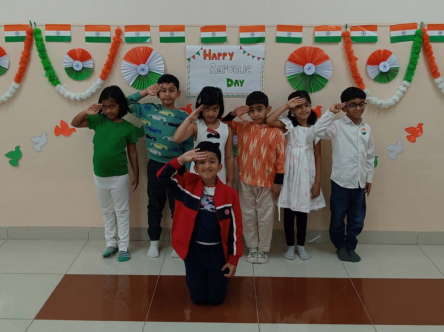 Republic Day was celebrated with great joy and pride in our Montessori school on 23rd January. Our little ones arrived dressed in the vibrant colours of saffron, white, and green, turning the campus into a beautiful sea of the tricolour.