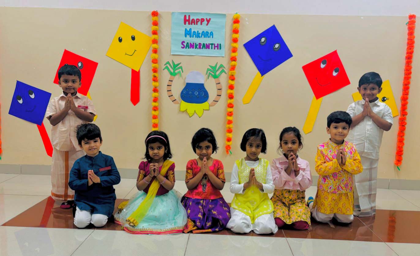Makara Sankranthi was celebrated with great joy in our Montessori on 13th January. The campus came alive with colour as the children arrived dressed in bright, traditional attire, adding cheer and charm to the day. Through simple and engaging activities, the children learned about the significance and traditions of this harvest festival in a way that was meaningful and age-appropriate.
